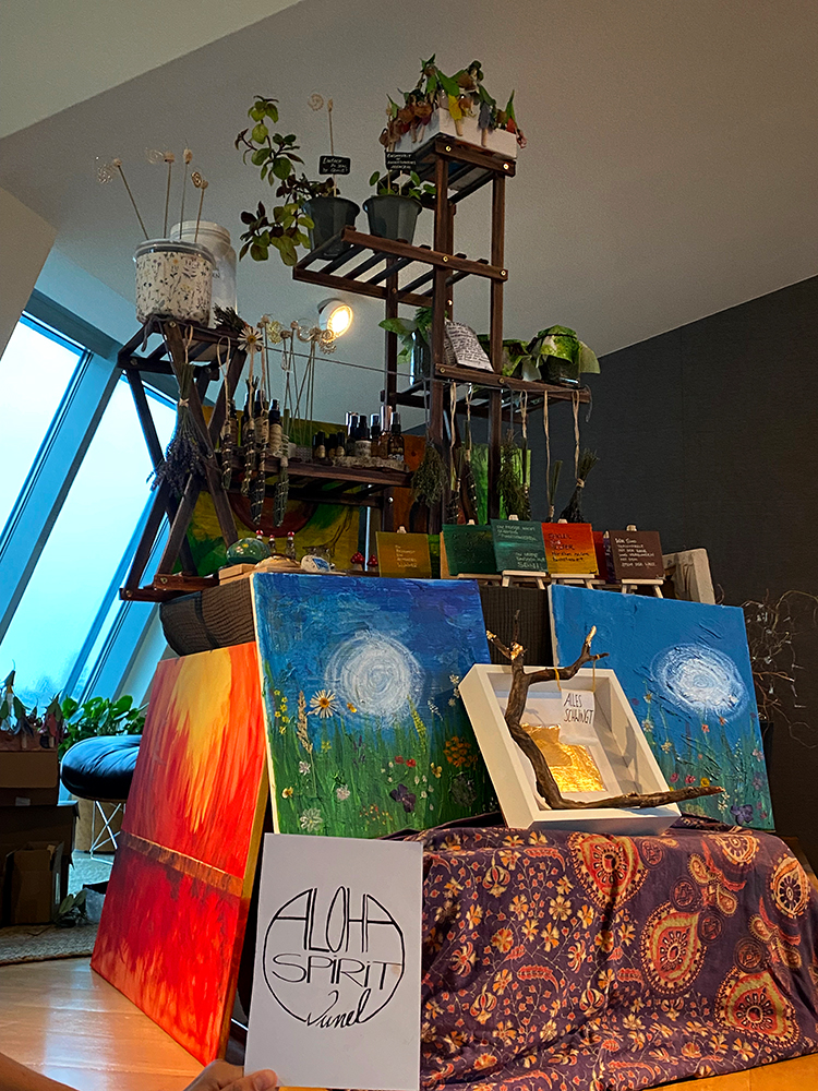 Mein Traum? Ein eigener Ort – ein Laden, ein Atelier, ein Gartenstudio – in dem Generationen zusammenkommen, um mit den Händen Neues zu erschaffen. Die Energien sichtbar machen und die Farben und Naturmaterialien ins Fließen bringen. Die Zeit bringt die Möglichkeit, sobald sie reif ist. „Auch wenn du die Sanduhr stark schüttelst, wird jedes Korn erst dann fallen, wenn es an der Zeit ist. Erzwinge nichts.
